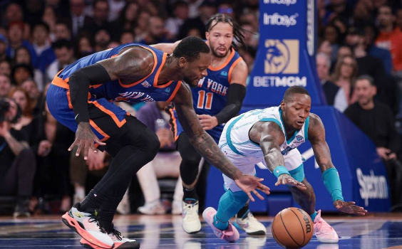 尼克斯队首发:朱利叶斯-兰德尔、RJ-巴雷特、杰伦-布伦森、米切尔-罗宾逊、昆汀-格兰姆斯
